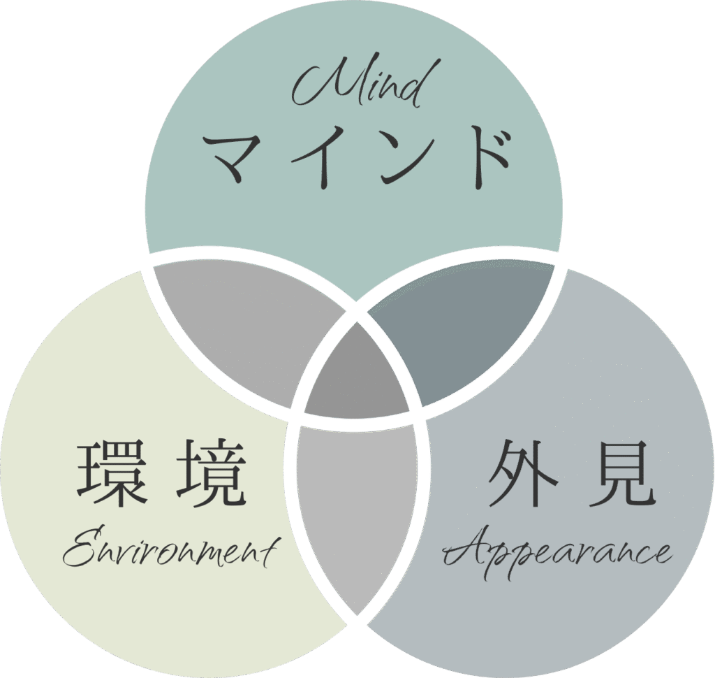 マインドだけ、外見だけといった部分的な変化ではなく、マインド × 外見 × 習慣 の相乗効果で根本からの変化を実現します。